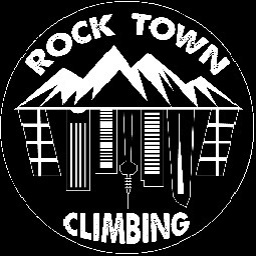 El logo de RockTown, una ciudad al revés bajo una montaña.
