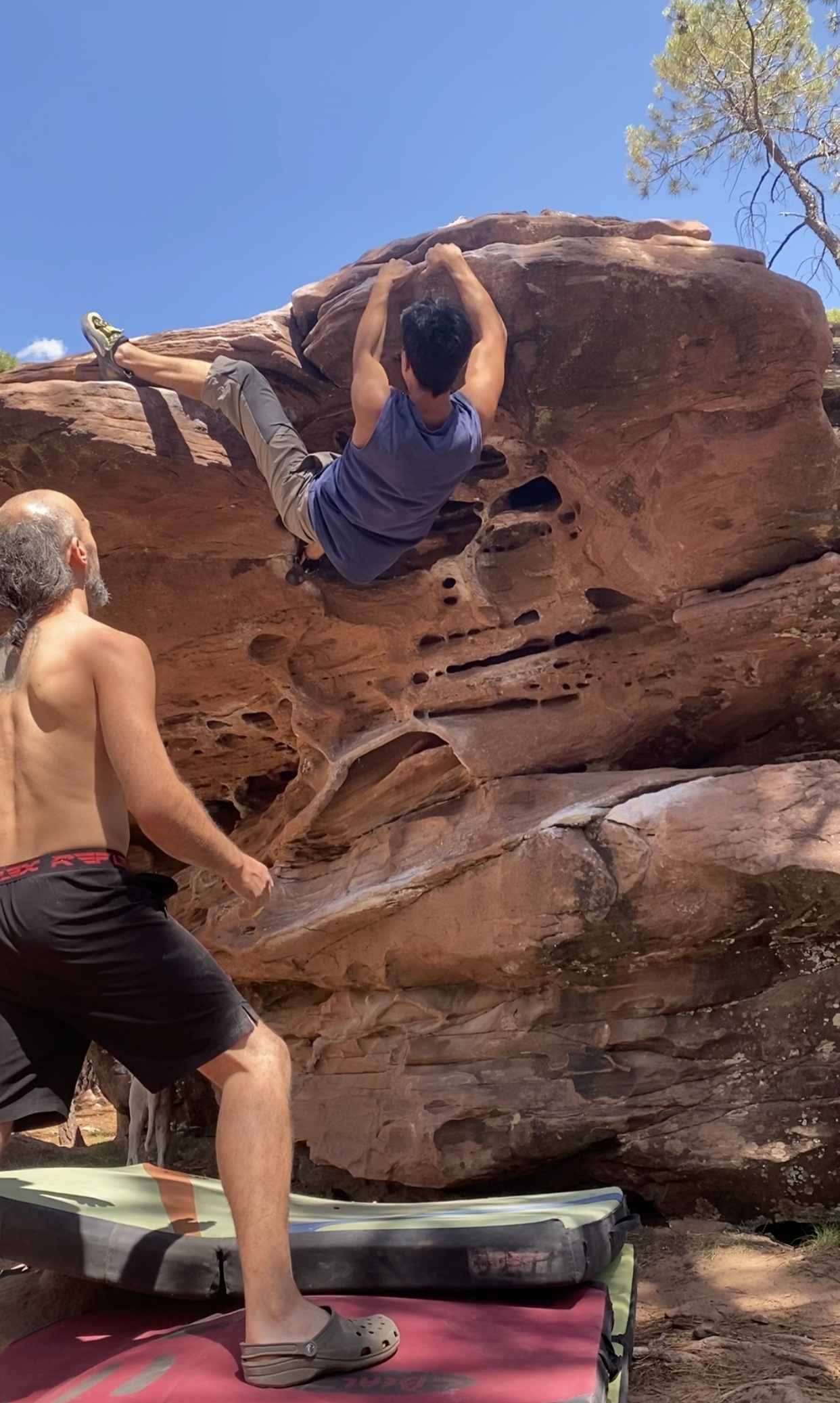 - No está permitido escalar sin camiseta.No te sientes en las colchonetas ni debajo de los plafones si no estás escalando.